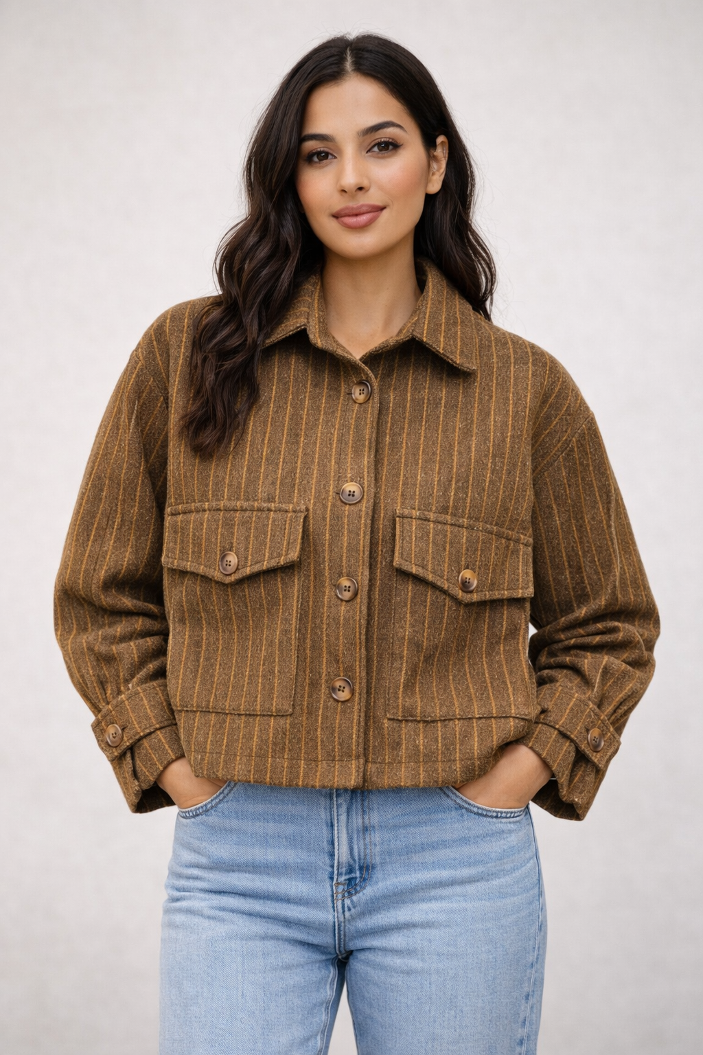شکت ترنچ کت کراپ فوتر زنانه دو جیب