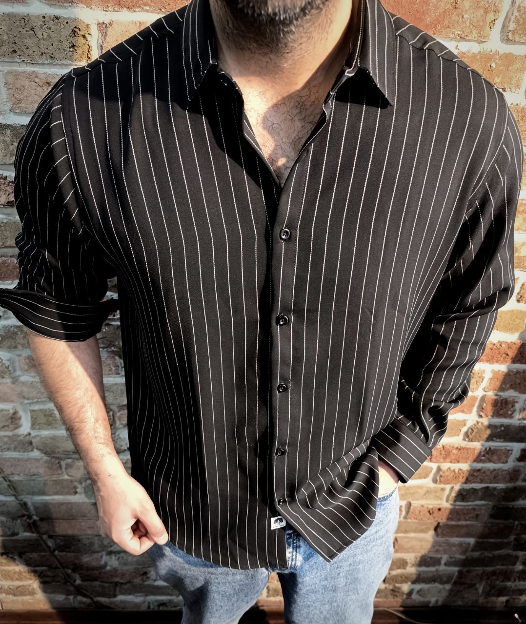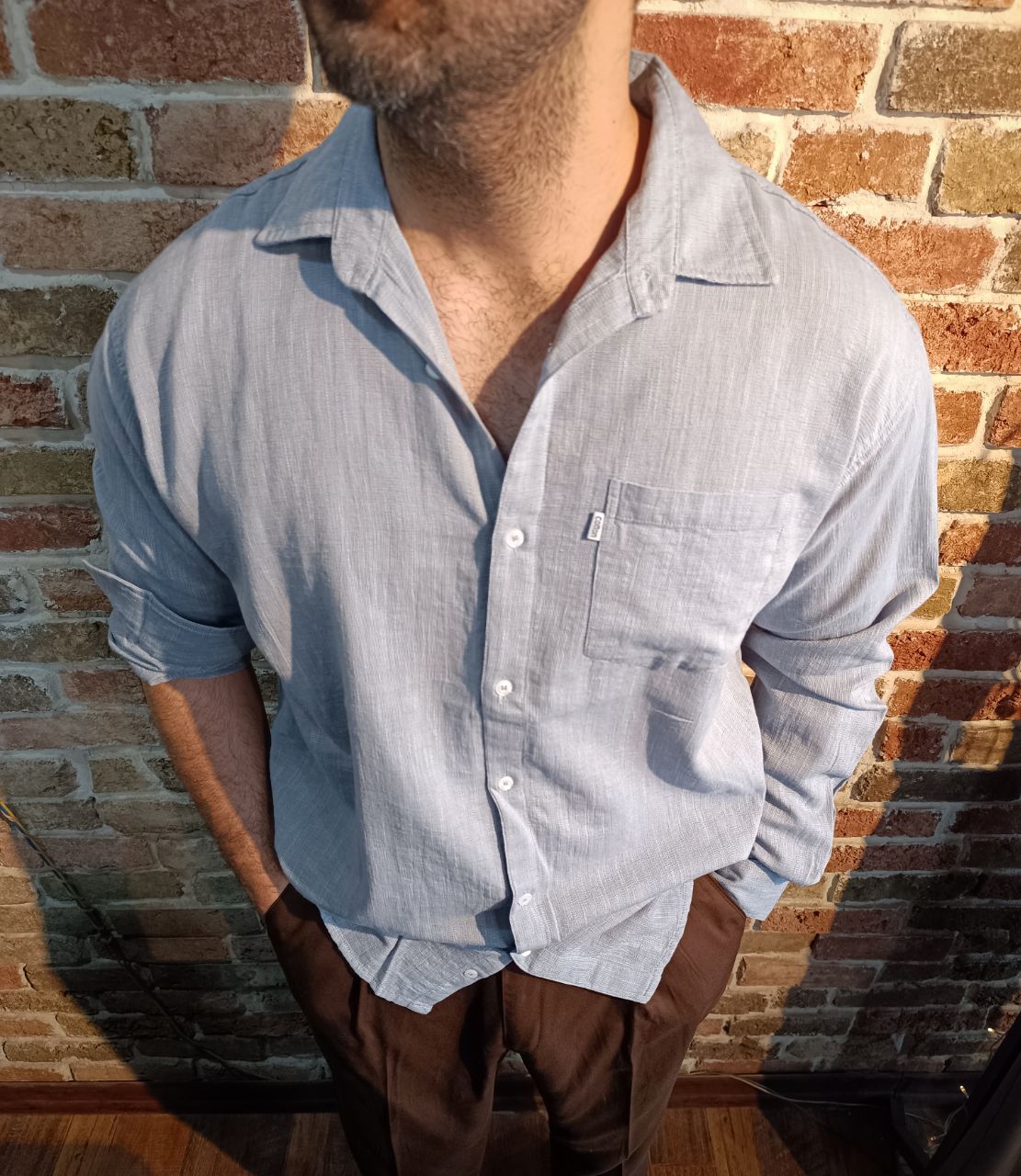 پیراهن مردانه تک جیب آستین بلند COTTON