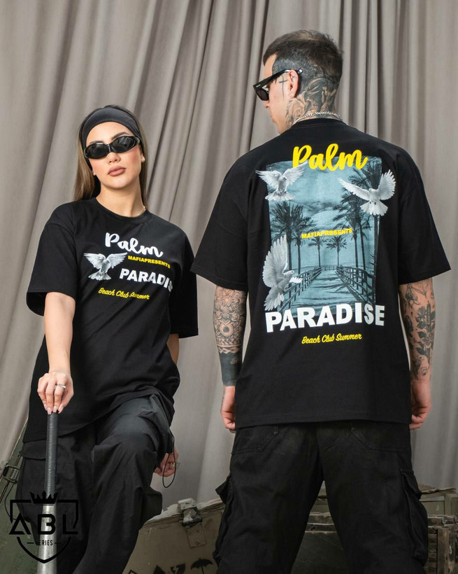 تیشرت چاپی ABL طرح مچینست طرح کبوتر palm paradise (پشت طرح دار)
