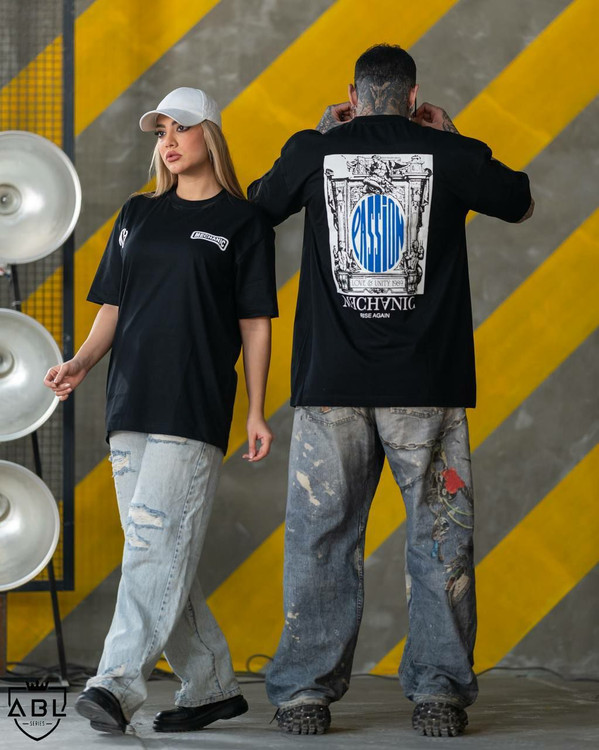 تیشرت چاپی پشت طرحدار پنبه طرح مچینست ABL مشکی