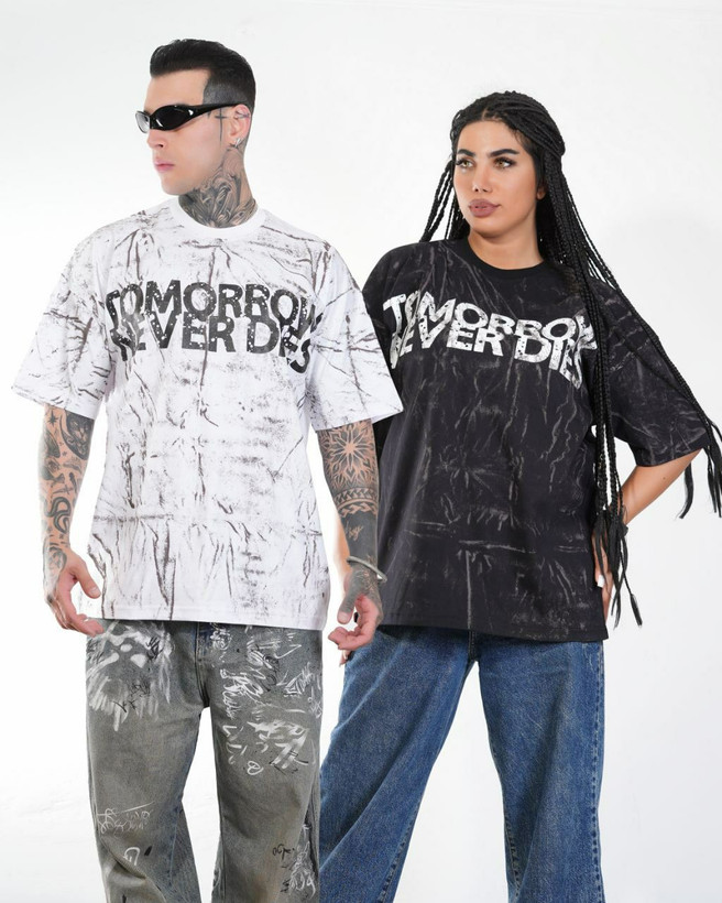 تیشرت باکسی مدل سنگشور مشکی و سفید کد TND اسپرت مردانه و زنانه