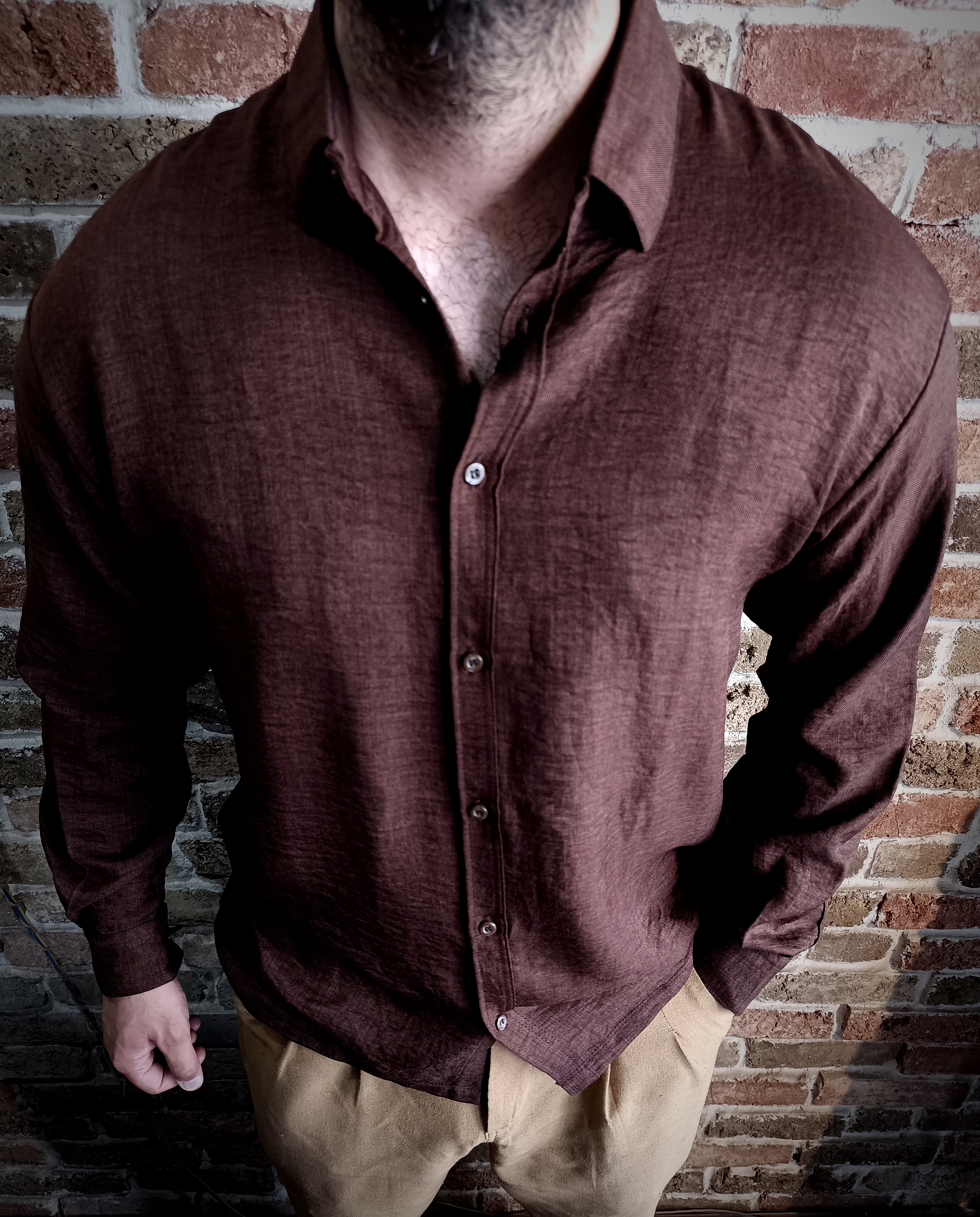 پیراهن مردانه باکسی ساده آستین بلند پارچه سوفیا