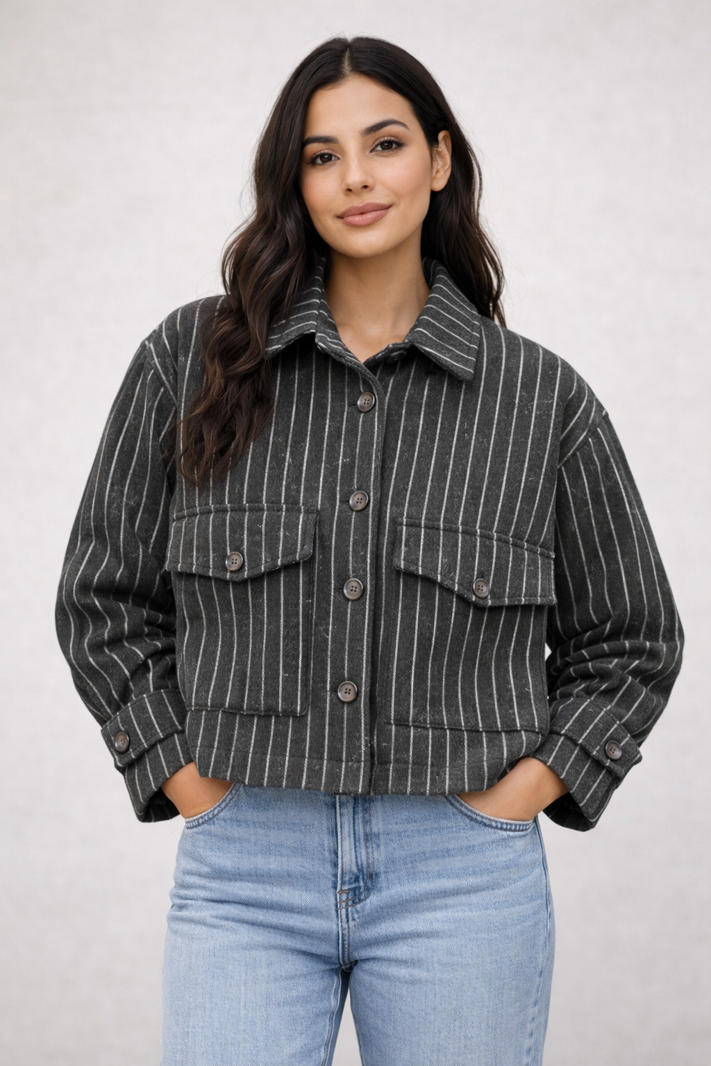 شکت ترنچ کت کراپ فوتر زنانه دو جیب راه راه جنس پارچه فوتر درجه یک گرم بالا دوخت و تنخور عالی فری سایز (تا 46) عرض سینه 60 سانتی متر قد 56 سانتی متر