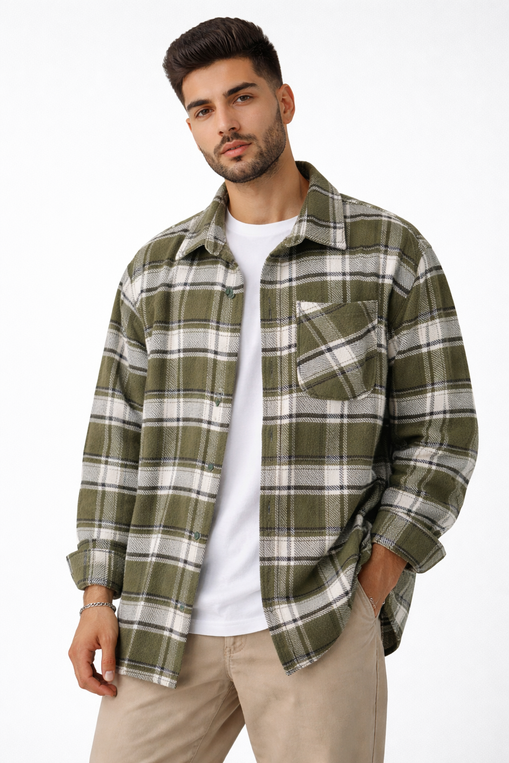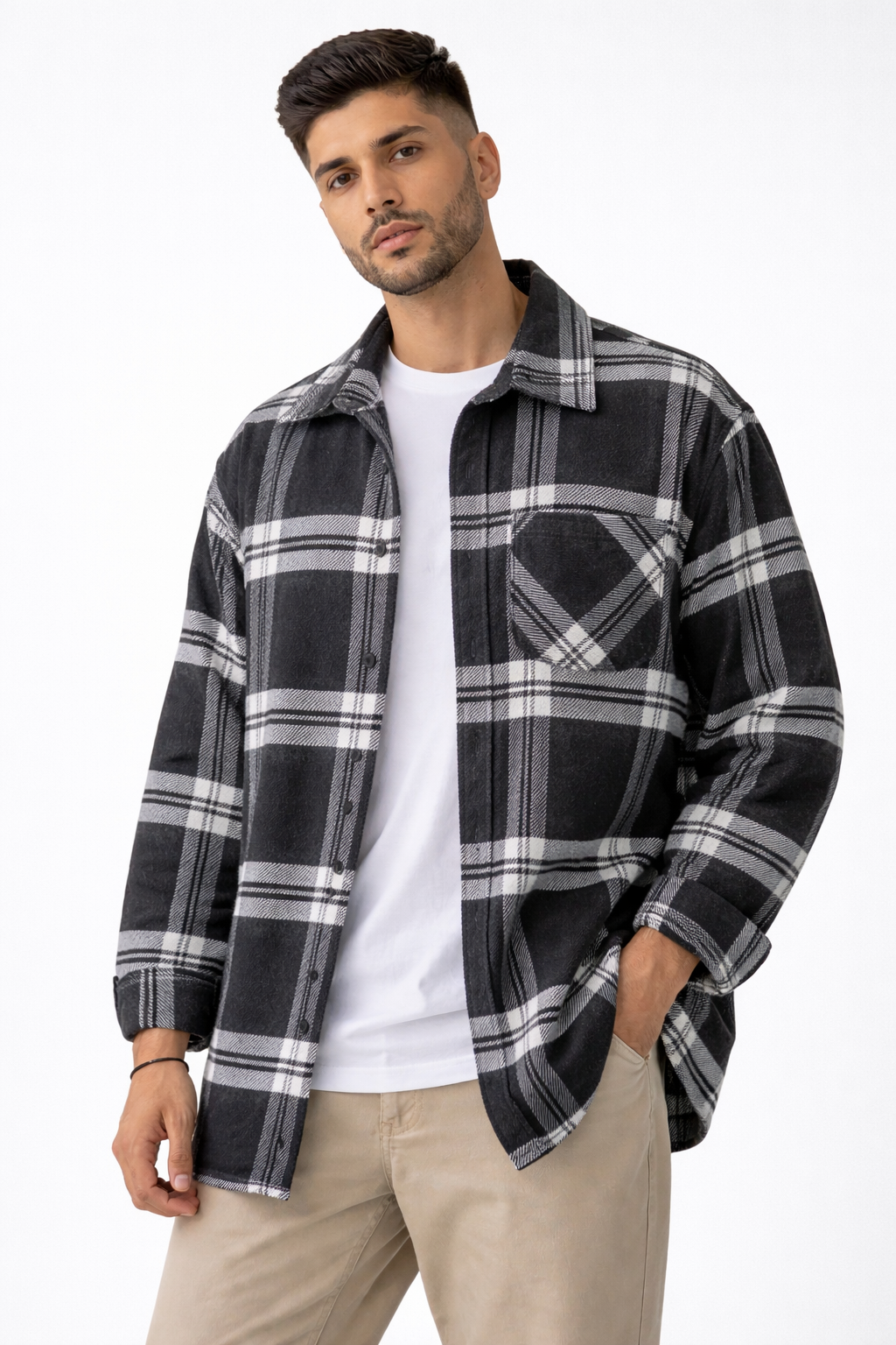 پیراهن مردانه پشمی گرم بالا چهارخونه پارچه ترک کد fcms12